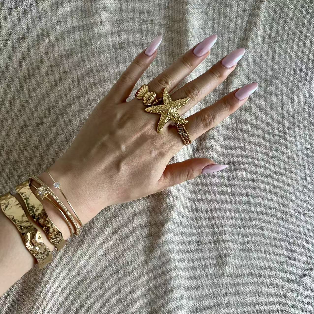 A gold-tone statement ring with a bold starfish shape.